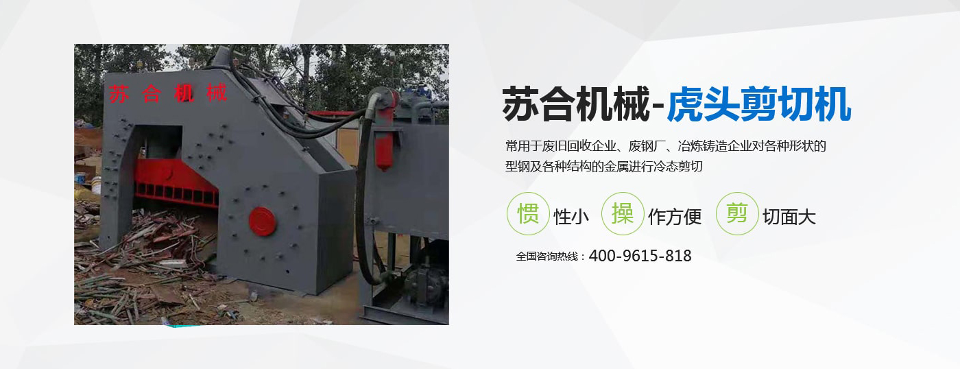 虎頭剪具有體積小、重量輕、慣性小、噪音低、動作平穩(wěn)、操作方便、靈活、剪切斷面大、剪刀口調(diào)整方便等優(yōu)點,操作使用安全。常用于廢舊回收企業(yè)、廢鋼廠、冶煉鑄造企業(yè)對各種形狀的型鋼及各種結(jié)構(gòu)的金屬進行冷態(tài)剪切。剪切機的用途就是用來剪切定尺、切頭、切尾、切邊、切試樣及切除軋件的局部缺陷等。 滑縣蘇合機械制造有限公司性能穩(wěn)定,操作簡單。歡迎來電咨詢 <了解更多>